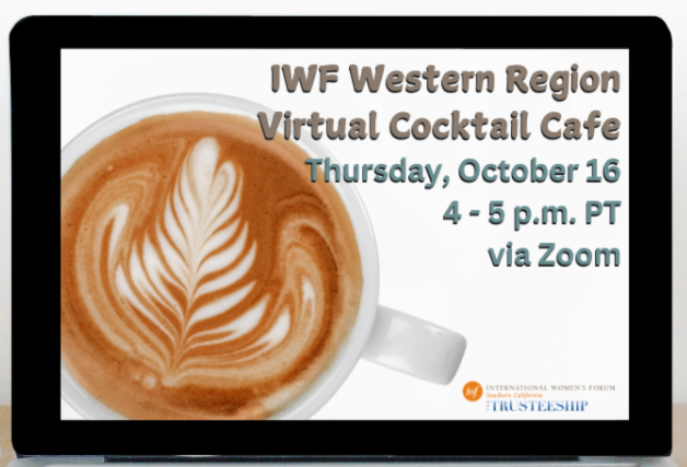 You’re invited to join the IWF Forum to Forum Western Region Cocktail Café. For this great event, we are bringing together our eight Western Region forums including British Columbia, Washington, Oregon, Northern California, Southern California, Idaho, Utah and Hawaii. Please bring a cocktail, glass of wine, tea, coffee or favorite beverage and be ready for a fun conversation with your IWF sisters!